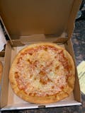 Plain new york cheese pizza, mozzarella and cassiano's pizza sauce.