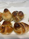 Pasta topped with our homemade beef meat sauce served with homemade garlic knots.