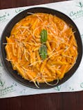 Vodka sauce (marinara, cream, prosciutto & vodka), pesto sauce, shaved parmesan, mozzarella & fresh basil.